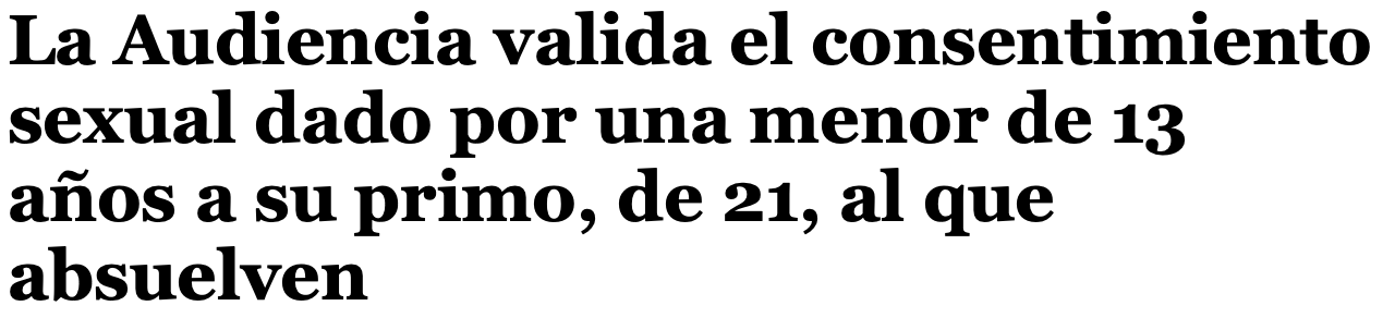 Para comprender mejor el criterio de los tribunales españoles al respecto, se da a conocer dos titulares en relación con el consentimiento de menores de dieciséis años para mantener relaciones sexuales con personas lejanas a su edad.